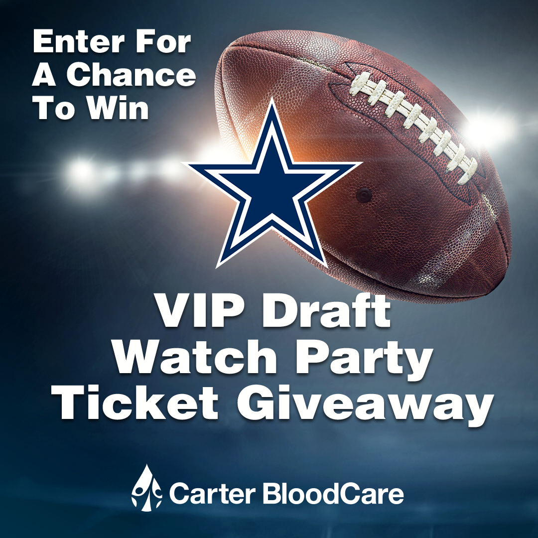 Redeem for a chance to win four VIP tickets to the Dallas Cowboys Draft Watch Party on April 23 at The Star in Frisco! One entry per donor. One winner will be randomly selected from all entries. A donation between March 23 and April 12 is required. See official rules for details. *Must be 18+ to be eligible to win.
